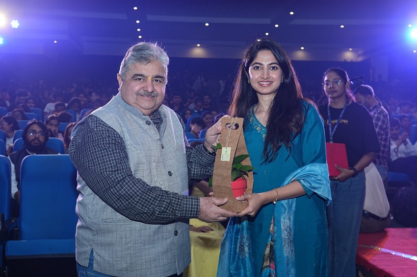 Addressing the gathering actress Khushi Ravi, known for her role in the film Dia, graced the occasion as a guest of honour. Her presence electrified the crowd, and her speech was both heartfelt and motivational. “What a vibe, what an energy Sindhi College, you’ve made this moment unforgettable!”. She encouraged students to value their education, work smart, and make their parents and teachers proud, emphasizing the importance of dedication and gratitude. She was also accompanied by Thejaswini Sharma(Actress) and N.Vinayaka(Debutant Director of the Movie – Full Meals), they too encouraged and appreciated the students efforts.