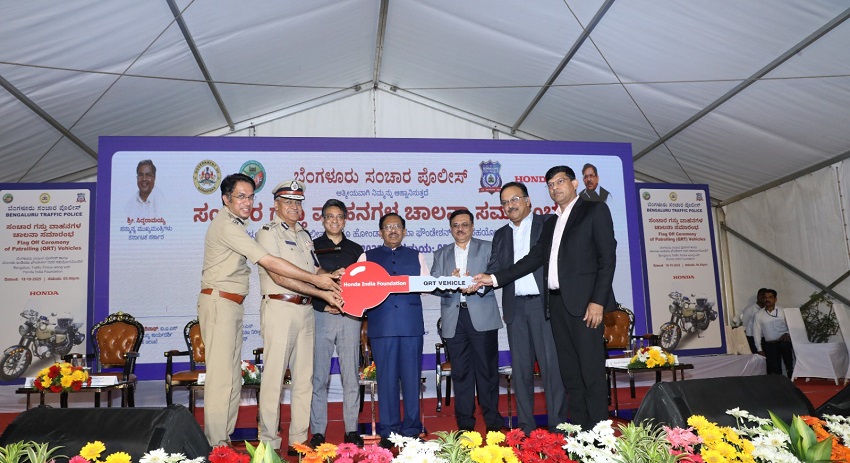 Bengaluru, October 18: As part of its efforts to help build safer communities and to take a step forward towards Honda’s global vision of a collision-free society by 2050, Honda India Foundation (HIF), the CSR arm for all Honda group of companies in India has handed over 50 specially equipped Quick Response Team (QRT) vehicles to the Karnataka Police as part of its ‘Sadak Sahayak: Surakshit Marg, Surakshit Jiwan’ project. This initiative is part of HIF’s broader road safety and community welfare programme, aimed at creating safer roads and strengthening public safety mechanisms throughout the state.